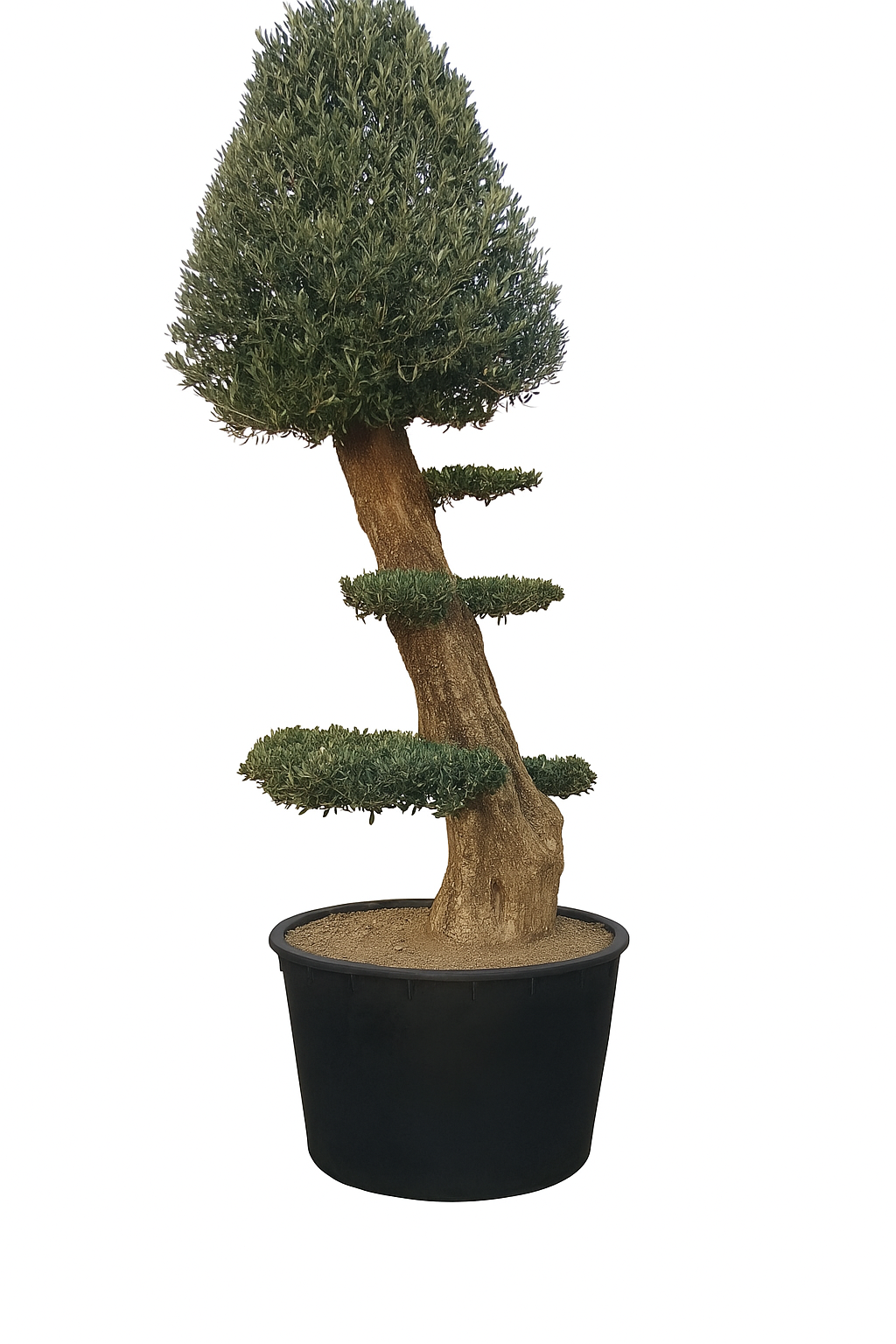 Großer Olivenbaum (Olea europaea Formschnitt ) im Pflanzkübel – Mediterranes Unikat, ca. 2–3,30 m Authentische mediterrane Atmosphäre für Ihren Außenbereich: Dieser imposante Olivenbaum besticht durch seinen charaktervollen, oft bizarr gewachsenen Stamm und die dichte, silbrig-grüne Krone. Als mehrjährig gepflegtes Naturunikat bringt er südländisches Flair und zeitlose Eleganz in jeden Garten oder auf jede Terrasse. Der robuste Olea europaea gedeiht an sonnigen, warmen und windgeschützten Standorten optimal. Mit seiner Winterhärte bis etwa –10 °C meistert er deutsche Winter problemlos, sofern der Standort ausreichend geschützt ist. Jeder Baum ist ein Einzelstück mit eigenem Charakter – perfekt für anspruchsvolle Gartengestalter, die Wert auf Authentizität und botanische Qualität legen.
